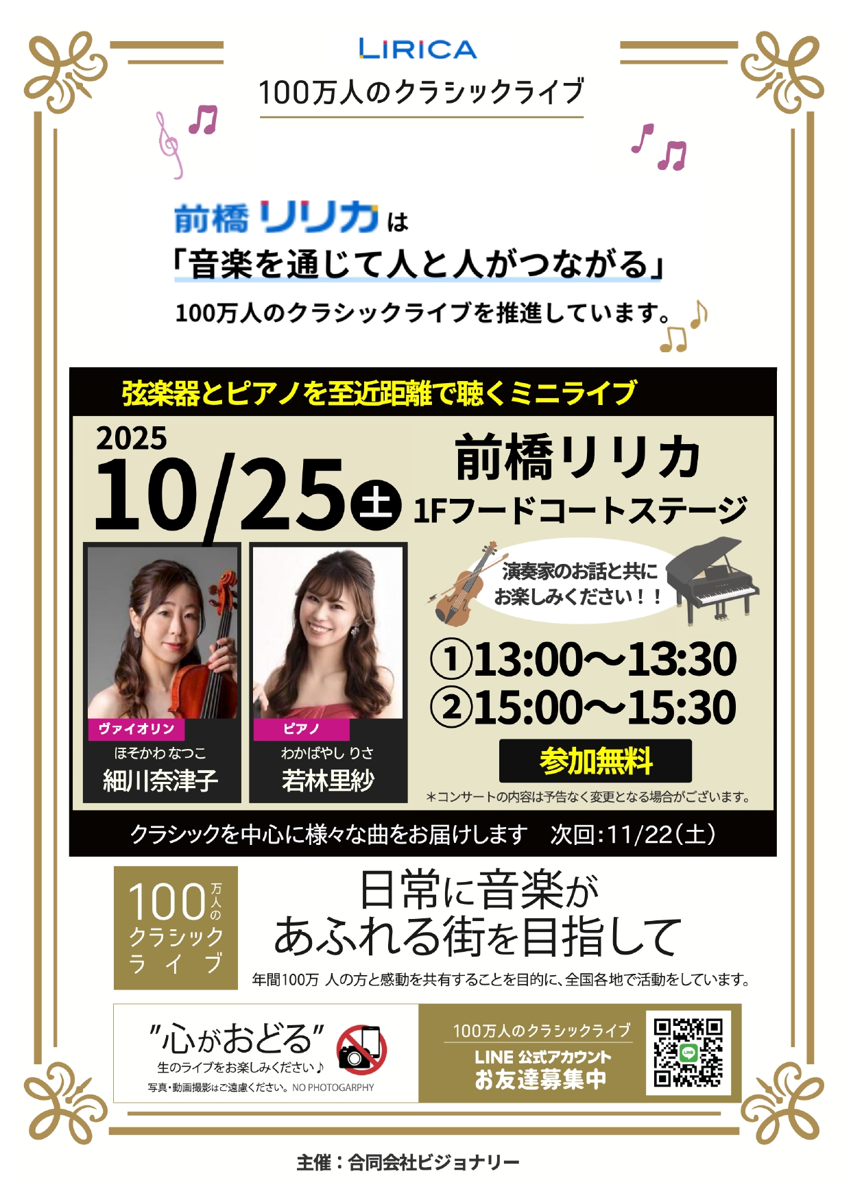 HOME > イベント情報 > 10月25日(土) 100万人のクラシックライブ